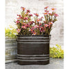 Frosted Spruce Sphere w/Pot, 9” has short, plastic pine needles whose vibrant green is sprinkled with a fine snow. Several small pinecones are visible among the branches. This floral has a natural, voluminous shape and sits in a brown pot with a rustic, distressed finish. Measures 10” high x 9” in diameter.