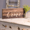 Sign features distressed, black lettering on a rustic, white background. Sign sits recessed within a natural wooden frame. Hangs on two d-ring loops. Measures 6" high by 24" wide and 1" deep.