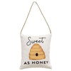 Family Pig Pillow Ornament is a stuffed fabric pillow ornament with the black silhouette of a pig and the word, FAMILY on a white background. Its back has a black and white buffalo check pattern and it has a jute string hanger. Measures 3 high by 4.25 wide by 1.5 deep.