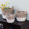 3/Set, Graywashed Oval Baskets w/Wooden Handles - The Fox Decor
