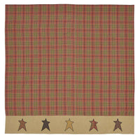 Refresh your country decor with the eye-catching Stratton Shower Curtain. Enjoy the green, red-orange, and tan plaid that has five whimsical primitive stars in various colors on a dark khaki bottom edge. Made completely from soft cotton, our 72x72 shower curtain contributes warm, versatile design to your bathroom as the cozy palette inspires primitive, Americana, log cabin, and farmhouse-themed looks. This folksy curtain has button holes for shower hooks and a rod pocket for easy hanging. It is machine washable for convenience.