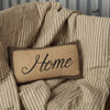 The 18x18 Primitive House Pillow is a warm welcome anywhere you place it. The centered mustard plaid house is appliqued on a black felt base with cross stitch and a wooden button door knob. The burgundy plaid chimneys contribute to the homespun feel. Reverses to solid black felt with 2 tie closures.