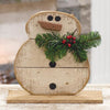 Light Up Snowman Box is a primitive wood box with a snowman's face and pine sprig accent. It has a black hat, orange nose, and white face, but boasts a weathered finish for a vintage feel. This box has a hole drilled out of its back panel, where a black, 6 foot long snap-in cord with a rolling on/off switch is fed through. Cord has a candelabra socket with a 7 watt bulb that lights up the snowman's face. It has a star cut-out in the hat and a drilled hole in the nose for light to shine through. Measures 16” high by 10” wide by 5” deep. Made in the USA.