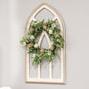 The Pumpkin Harvest Wreath is a decorative, autumnal wreath with a natural, textured, brown twig base. The wreath features an assortment of Fall colors and textures, including maple leaves, orange berries, dried raffia, wheat stems, pinecones, and large orange pumpkins. This wreath is a great pick for Fall home décor and can be displayed on any door or wall using a wreath hanger or a nail. Measures 9.5” in diameter (inner) and 18-20" in diameter (outer).