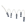 The Beaded Ice Cream Garland is a decorative miniature garland made of ivory string with round wooden beads. The garland has a pastel pink and green theme and features five wooden ice cream cone charms. This garland is sweet and festive, ideal for dressing up a shelf, tray, frame, or other spot in the home with a fun summer theme. Measures 30” long.