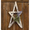 Round Lath Pumpkin with Star is a slatted wooden pumpkin hanger painted in a distressed, orange finish. Pumpkin is accented with a primitive, ivory painted star. Item has angel vine and raffia details. Hangs on a thin wire loop. Measures 14½" high by 12 wide. Please note: due to the handmade nature of this item, the amount of raffia and angel vine on each piece may vary.