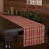 The Claren Runner 13x48 is a cheery but tried and true mix of red, green, and tan, interwoven with a sparkle of gold thread throughout for true Holiday spirit. Plaid dominates the runner and is finished with whip stitching to complete the heirloom look.