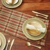 The Claren Runner 13x72 is a cheery but tried and true mix of red, green, and tan, interwoven with a sparkle of gold thread throughout for true Holiday spirit. Plaid dominates the runner and is finished with whip stitching to complete the heirloom look.
