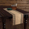 A natural jute center is paired a soft plaid cotton border to give the 13x72 Clement Runner a Christmas look that will appeal to the everyday working citizen. The center jute strip is fringed and its solid color contrasts nicely with the red, green, and tan plaid of the border.
