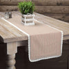 Show off beautiful hues of muted bronze green to create a dining table ensemble as delectable as your dinner. White scalloped lace gives a slight country French feel to the Kendra Stripe Green Runner 13x36.