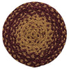 Braided Black Star Jute Coaster is a handmade mat featuring black and tan jute in a circular braided pattern and a stamped star in the middle. Use this trivet to hold hot dishes fresh from the oven and protect kitchen surfaces or top with a candle and ring for decorative use. Measures 8” in diameter and .25” thick. Please note: Due to the handmade nature of this product, some variation in size may occur.