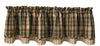 The Shades of Brown Lined Layered Valance features a warm honey ditsy layered over a tinderbox brown & cream gingham. Both fabrics have soft, scalloped edges, top layer accented with fabric-covered buttons. This is one country-cute valance!