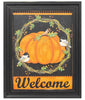 Camping Happily Ever After Framed Print features an aqua and ivory striped camper design with window plant boxes. The front of the camper is decorated with a strand of patio lights and a colorful flag garland. Print has a distressed, faded background and displays the phrase, "Camping Happily Ever After." Includes a distressed, white painted wood frame with a pre-drilled keyhole hanger on back. Measures 14.25" high by 10.5" wide, or 17.25" high by 13.5" wide and .5" deep with frame.