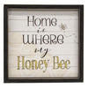 The Hayride Framed Print is a decorative printed artwork piece made of lightweight wood held inside of a wooden frame with a distressed black finish. The print depicts an autumnal country landscape with a white house, red barn, silo, and tractor pulling a wagon with haybales, pumpkins, and a black cat. Display this print during the Fall and Halloween season for a rustic and primitive touch to the home, placed on a wall or propped on a shelf or tabletop. Measures 12” high by 16” wide. Made in the USA!
