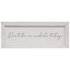 No. 8 Bee Sting Framed Print features the image of a vintage blue chair with chipped paint next to a large crock. The chair has a doily draped over the back with a candle and a basket sitting on the chair. The print comes with a black, lightly distressed wooden frame. Measures 16" high by 12" wide and is made in the USA.