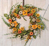 Black-Eyed Susan Wreath features golden yellow flowers and autumn leaves with small twig accents. It has a 24" outer diameter.