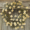 Glittered Mistletoe Candle Ring is a festive winter wreath that features green plastic leaves and white foam buds, covered in a healthy coating of silver glitter and assembled on a brown-wrapped floral base. Measures 6½" inside and 12" outside diameter.