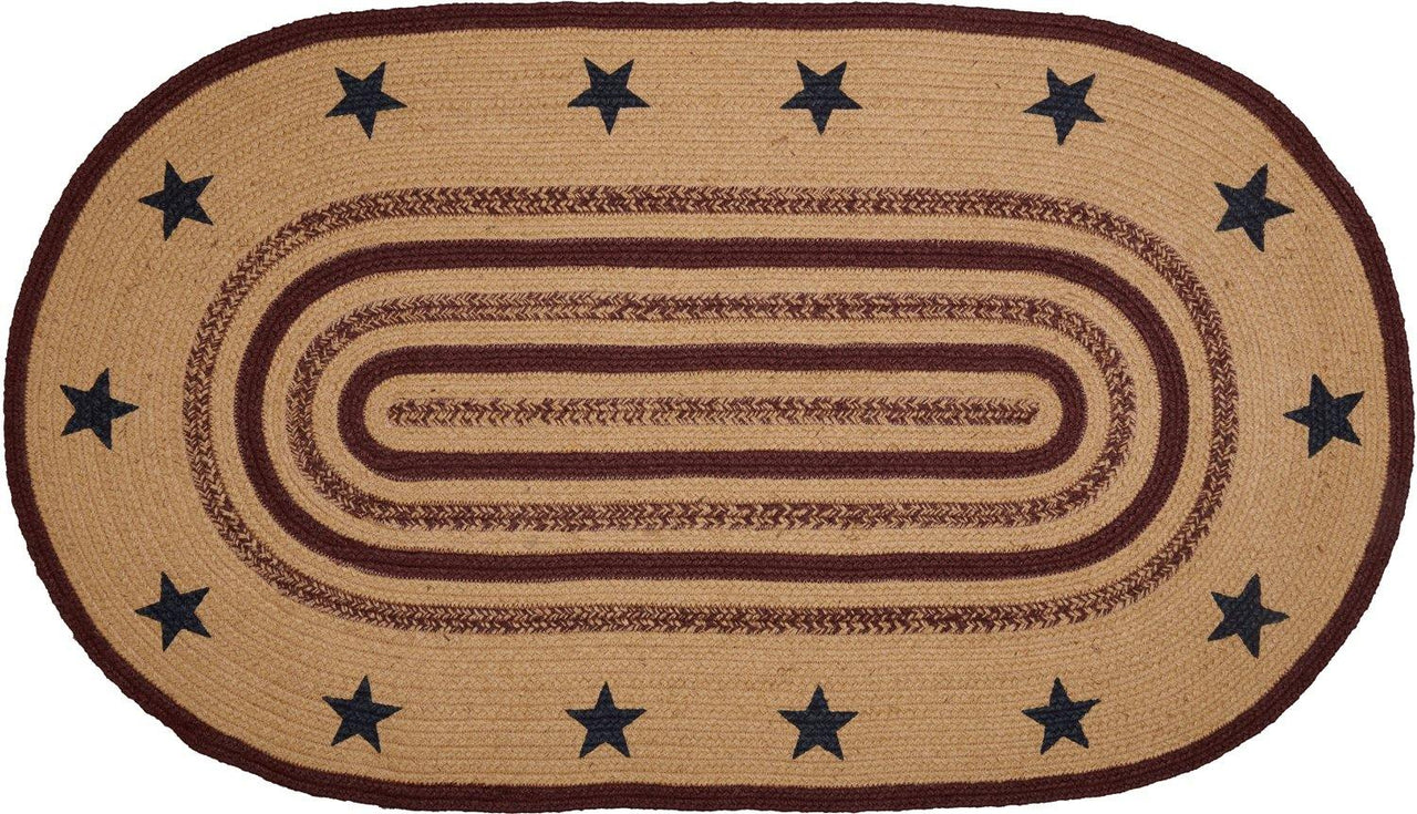 Potomac Jute Braided Rug Oval Stencil Stars 27"x48" with Rug Pad VHC Brands